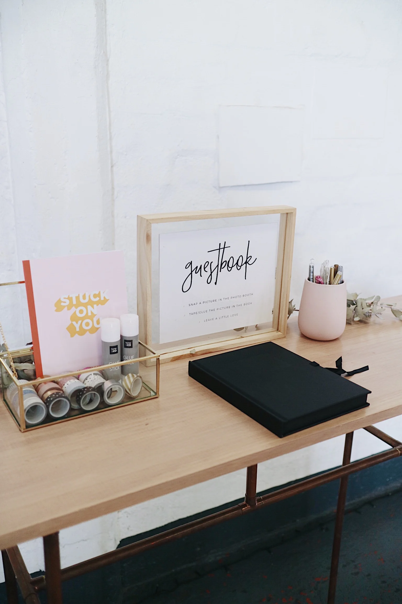 Enough stickers, pens, washi tape + glue sticks for guests to use to their heart's content!